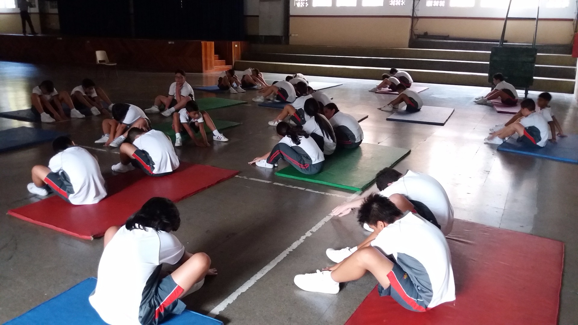 PRIMERA CLASE DE GIMNASIA 3ER PERIODO 07.07.2017 Hoy trabajamos vuelta canela hacia delante y hacia atrás; comenzamos el ejercicio con un estiramiento, al terminarlo, el profe nos explicó que cuidados debiamos tener para hacerlo bien.