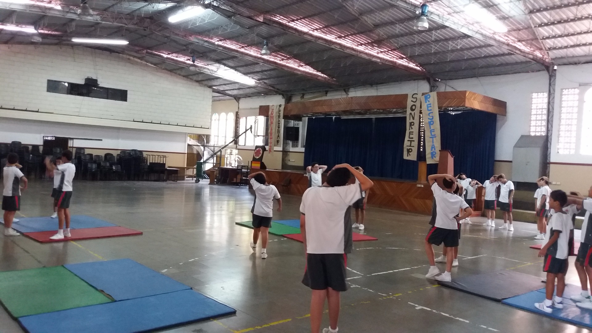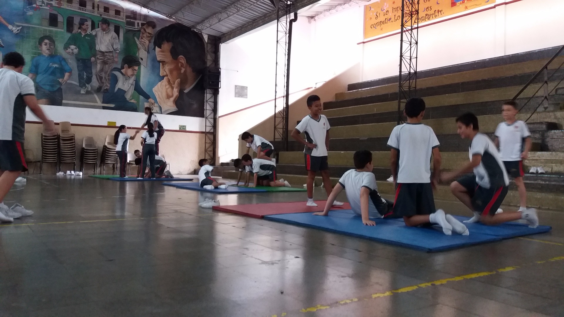 SEGUNDA EXPERIENCIA EN GIMNASIA 10.07.2017 Esta fue la segunda sesión de gimnasia; trabajamos, primero que todo, calentamos y estiramos para evitar alguna lesion, despues continuamos con la serie que nos explicó el profesor que consistia en correr alrededor de unas colchonetas y cuando el profe pitara, comenzariamos con las vueltas canela hacia adelante y hacia atras.